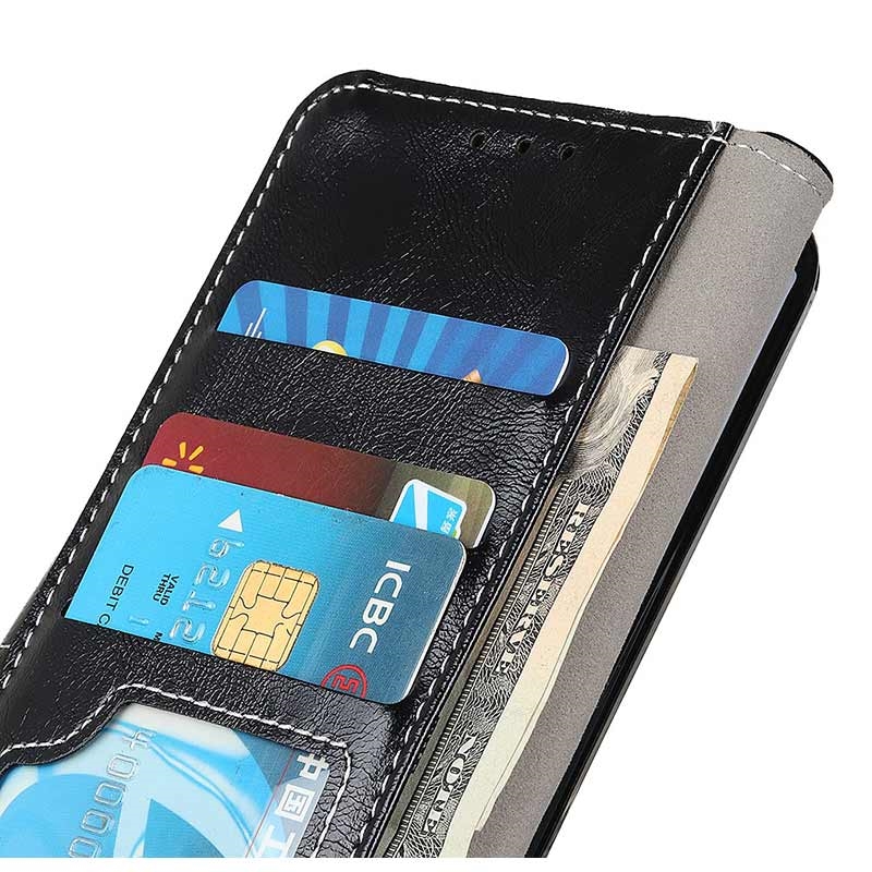 Dette lommeboketuiet er designet for bekvemmelighet, og har tre kortplasser og en sidelomme for å ta med kort og penger når du er på farten. Det sammenleggbare stativet gjør det enkelt å se på, noe som gjør det perfekt for både jobb og fritid. Den enkle åpningslåsen med to magnetiske lukkemekanismer på siden sørger for at eiendelene dine er godt festet.