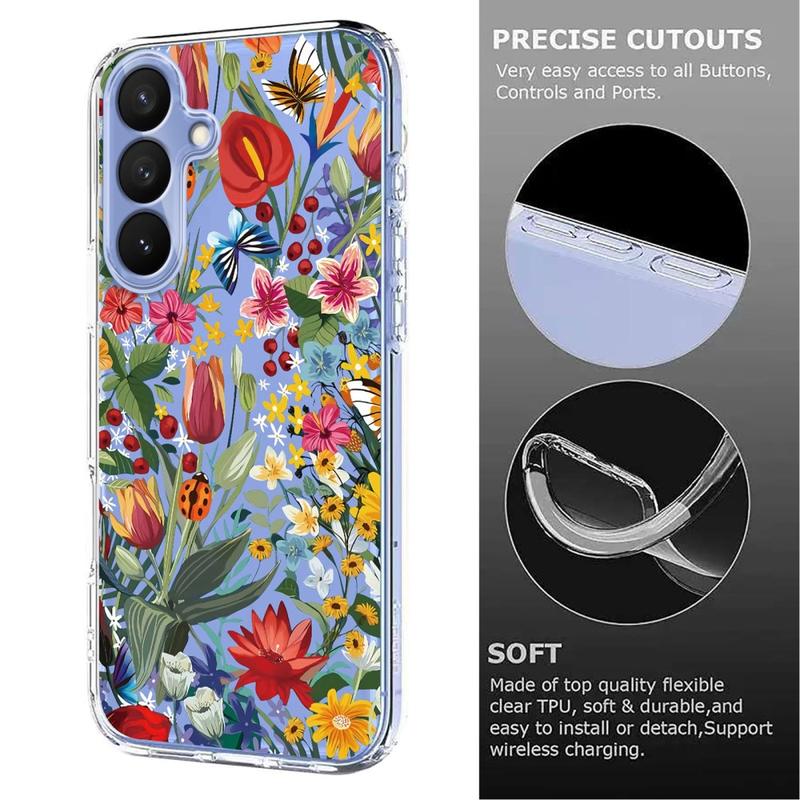 Forvandle din Samsung Galaxy S26 Pro til et håndholdt kunstverk. Floral-utgaven omgir telefonen din med et drømmende lag av lavendelblomster og delikate sommerfugler trykt med HD-blekk som motstår falming. Dekselet er laget av fleksibelt, støtdempende TPU, og tilpasser seg hver eneste kurve på enheten din, mens de opphøyde leppene beskytter skjermen og kameralinsen mot daglige støt. Et matt, anti-væskebelegg holder designet skarpt og telefonen fri for fingeravtrykk, uten å blokkere trådløs Qi-lading.
