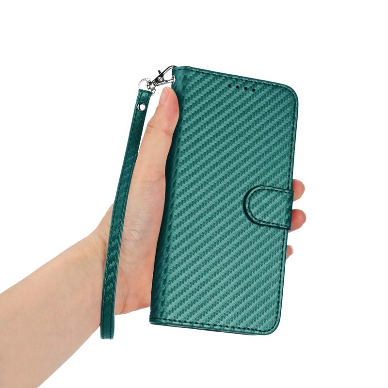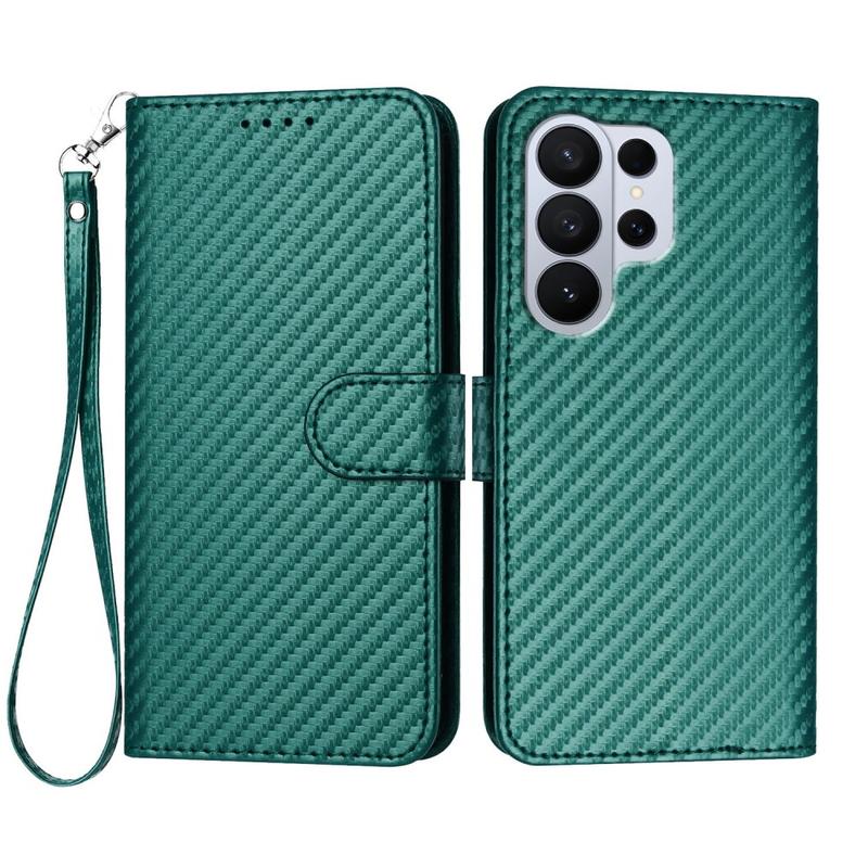 Samsung Galaxy S26 Pro Premium lommebokveske med stropp - karbonfiberstruktur - Karbongrønn