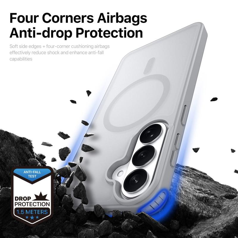 Beskytt din Samsung Galaxy S26+ med et elegant, matt deksel som kan klikkes rett på MagSafe-ladere og -tilbehør. Yind-serien kombinerer en ripebestandig PC-bakplate med støtdempende TPU-kanter og en presisjonsjustert magnetring, noe som gir kabelfri strøm og allsidig beskyttelse mot fall uten store lommer.