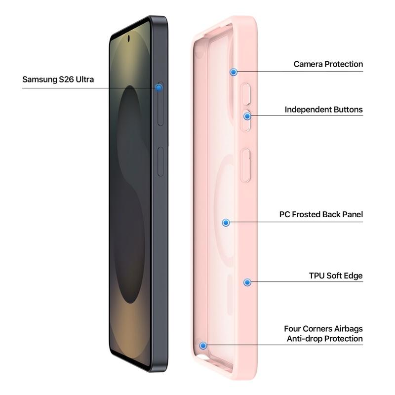 Beskytt din Samsung Galaxy S26 Ultra med et elegant, matt deksel som kan klikkes rett på MagSafe-ladere og -tilbehør. Yind-serien kombinerer en ripebestandig PC-bakplate med støtdempende TPU-kanter og en presisjonsjustert magnetring, noe som gir kabelfri strøm og allsidig beskyttelse mot fall uten store lommer.