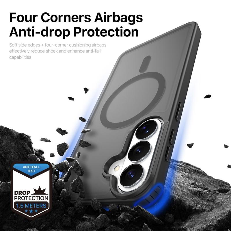 Beskytt din Samsung Galaxy S26 med et elegant, matt deksel som kan klikkes rett på MagSafe-ladere og -tilbehør. Yind-serien kombinerer en ripebestandig PC-bakplate med støtdempende TPU-kanter og en presisjonsjustert magnetring, noe som gir kabelfri strøm og allsidig beskyttelse mot fall uten store lommer.
