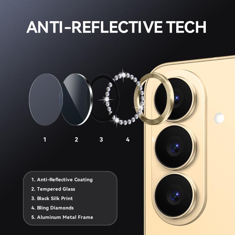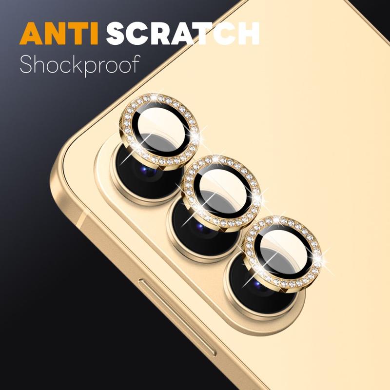 Gi Samsung Galaxy S26 glitter og beskyttelse med NORTHJO Camera Lens Protector. Den er designet med glitrende rhinestones og presisjonsslipt herdet glass, og beskytter kameralinsen mot riper, støv og støt, samtidig som den tilfører et snev av eleganse og luksus.