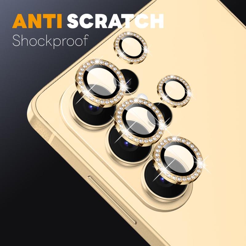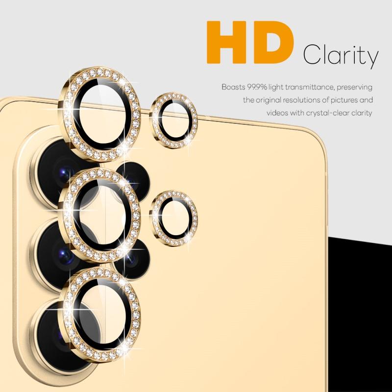 Gi Samsung Galaxy S26 Ultra glitter og beskyttelse med NORTHJO Camera Lens Protector. Den er designet med glitrende rhinestones og presisjonsslipt herdet glass, og beskytter kameralinsen mot riper, støv og støt, samtidig som den tilfører et snev av eleganse og luksus.