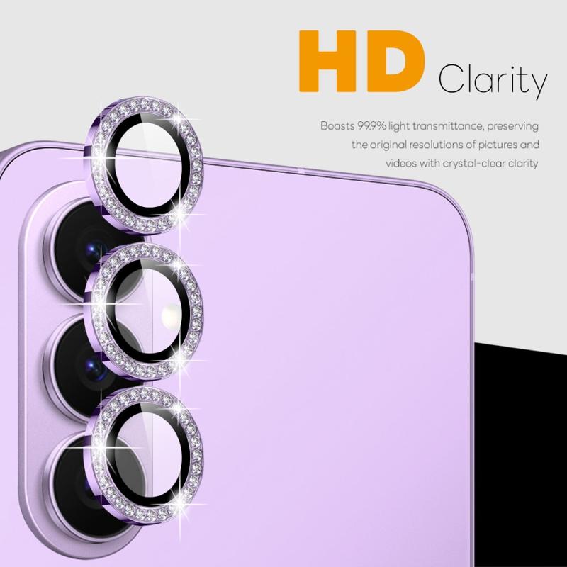 Gi Samsung Galaxy S26+ glitter og beskyttelse med NORTHJO Camera Lens Protector. Den er designet med glitrende rhinestones og presisjonsslipt herdet glass, og beskytter kameralinsen mot riper, støv og støt, samtidig som den tilfører et snev av eleganse og luksus.