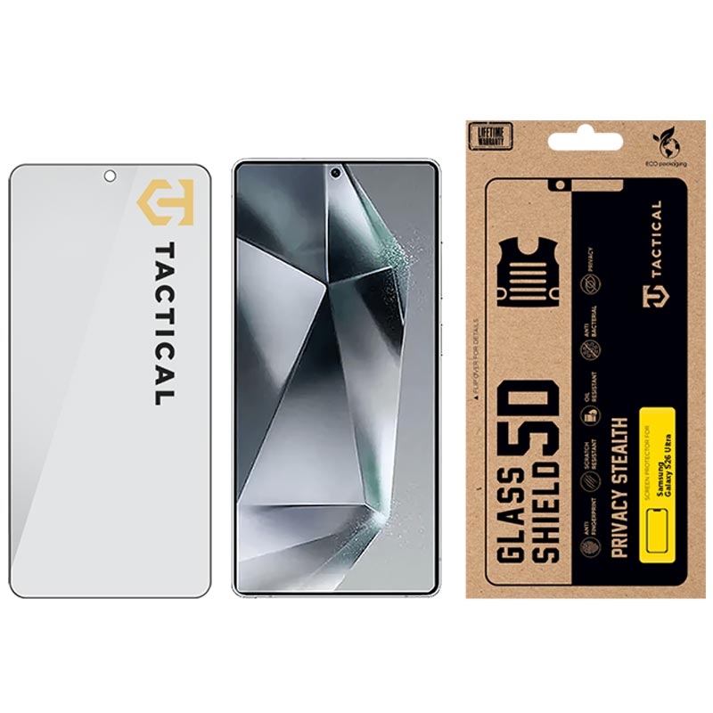Tactical Glass Shield Privacy Steaalth 5D kombinerer personvern med høy holdbarhet. Den hjelper med å holde skjerminnholdet på Samsung Galaxy S26 Ultra skjult fra sidevinkler, samtidig som den gir pålitelig støtmotstand og en ren, responsiv berøringsopplevelse.