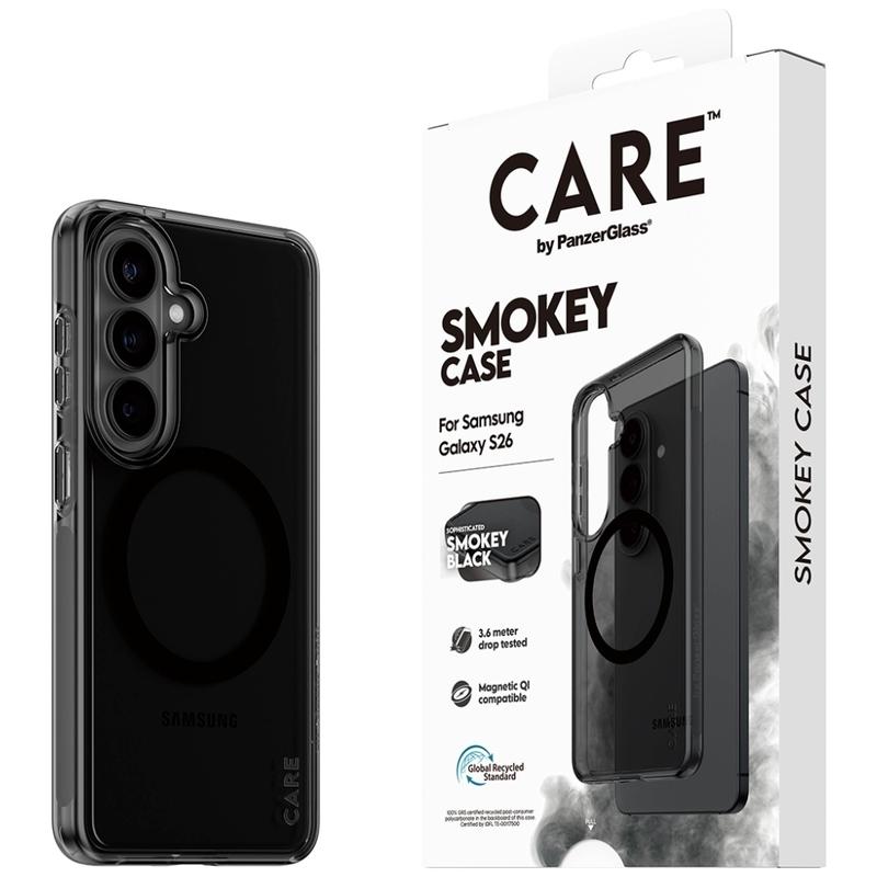Care by PanzerGlass Urban Explorer Smokey magnetisk-deksel til Samsung Galaxy S26 - 100 % resirkulert plast, testet for fall fra 3,6 meter, garanti mot gulning, forbedret kamerabeskyttelse