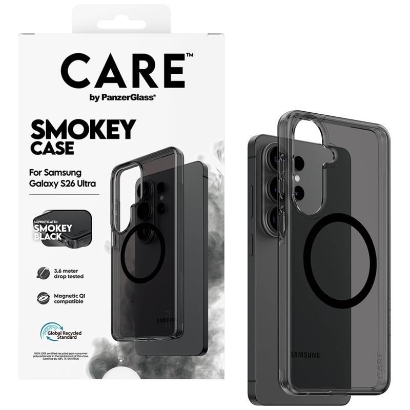 Care by PanzerGlass Urban Explorer Smokey magnetisk-deksel til Samsung Galaxy S26 Ultra - 100 % resirkulert plast, testet for fall fra 3,6 meter, garanti mot gulning, forbedret kamerabeskyttelse