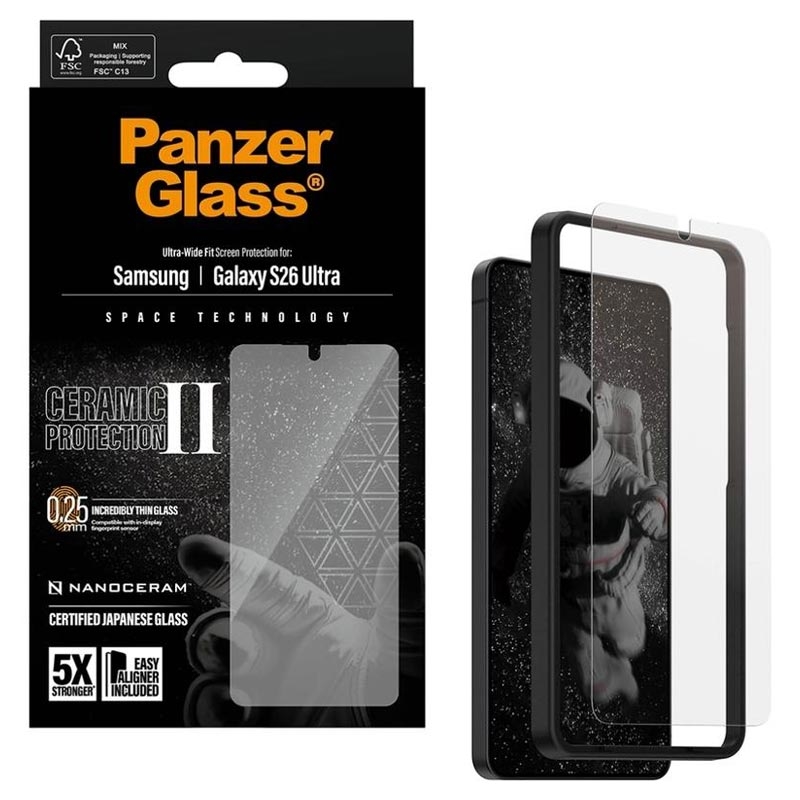 PanzerGlass Ceramic II Protection Ultra-Wide Fit EasyAligner skjermbeskytter for Samsung Galaxy S26 Ultra - glasskeramikk, fingeravtrykkbestandig, passer til deksler