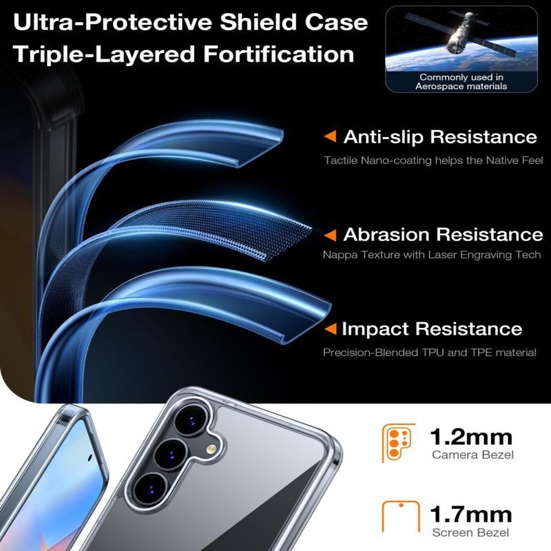 Dekselet har en innvendig støtdempende struktur og en forsterket TPU-støtfanger som bidrar til å redusere kraften ved utilsiktede fall og støt. Integrerte luftputesoner gir ekstra beskyttelse for daglig bruk uten å legge til unødvendig masse.