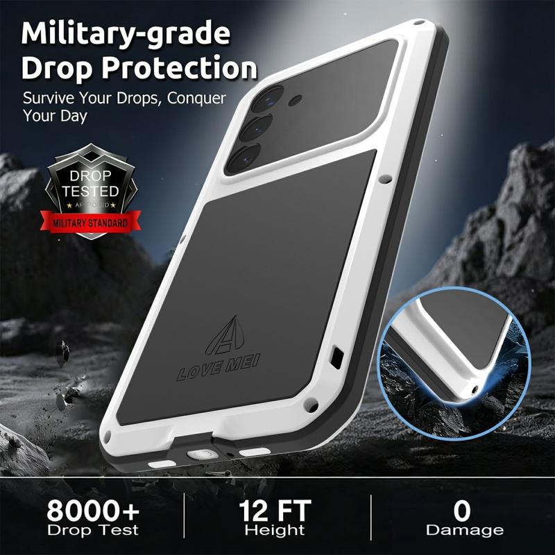 Love Mei Powerful hybrid-etuiet gjør din Samsung Galaxy S26+ til en festning. Med en kombinasjon av militær beskyttelse, presisjonsteknikk og trådløs lading er telefonen din klar for alt - fra byliv til ekstreme forhold.