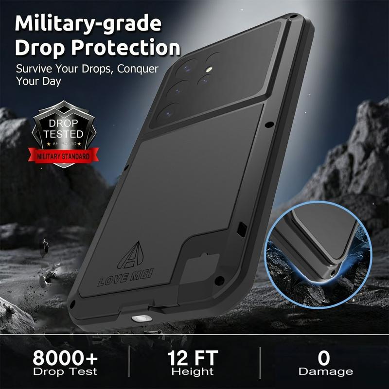 Love Mei Powerful hybrid-etuiet gjør din Samsung Galaxy S26 Ultra til en festning. Med en kombinasjon av militær beskyttelse, presisjonsteknikk og trådløs lading er telefonen din klar for alt - fra byliv til ekstreme forhold.