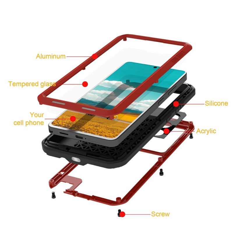 - Skruelåsdesign - Forsterket med sikre skruelåshjørner som forsegler etuiet godt, slik at telefonen din er beskyttet mot fall, støt og røff håndtering.