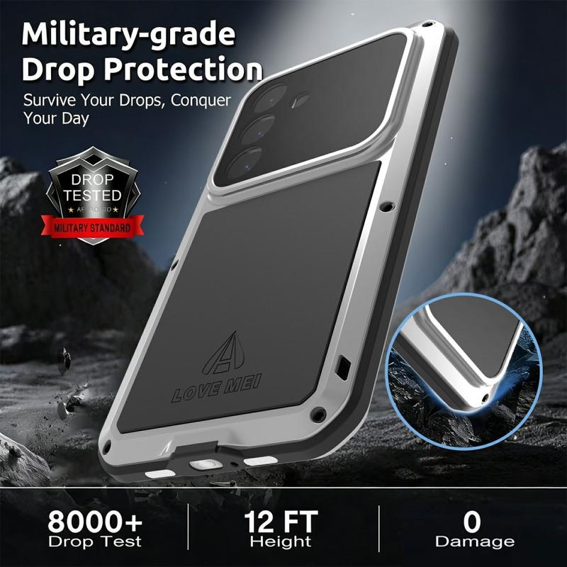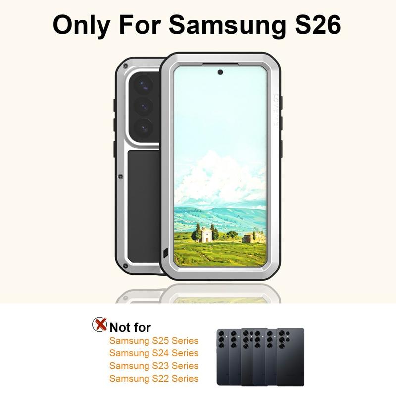 Love Mei Powerful hybrid-etuiet gjør din Samsung Galaxy S26 til en festning. Med en kombinasjon av militær beskyttelse, presisjonsteknikk og trådløs lading er telefonen din klar for alt - fra byliv til ekstreme forhold.