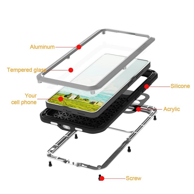 - Skruelåsdesign - Forsterket med sikre skruelåshjørner som forsegler etuiet godt, slik at telefonen din er beskyttet mot fall, støt og røff håndtering.