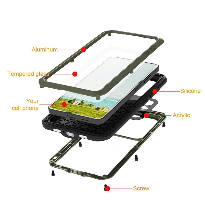 - Skruelåsdesign - Forsterket med sikre skruelåshjørner som forsegler etuiet godt, slik at telefonen din er beskyttet mot fall, støt og røff håndtering.