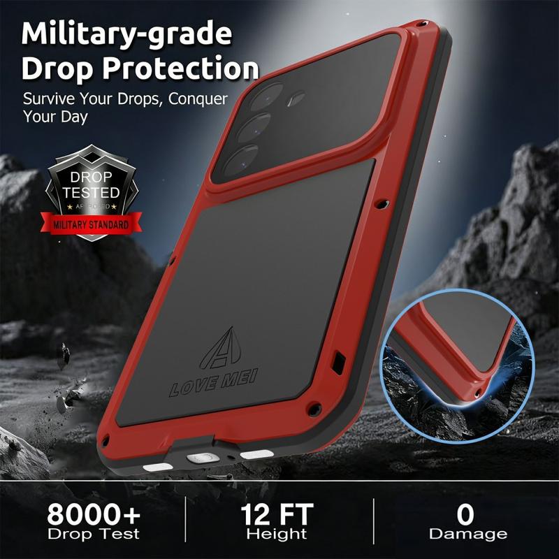 Love Mei Powerful hybrid-etuiet gjør din Samsung Galaxy S26 til en festning. Med en kombinasjon av militær beskyttelse, presisjonsteknikk og trådløs lading er telefonen din klar for alt - fra byliv til ekstreme forhold.