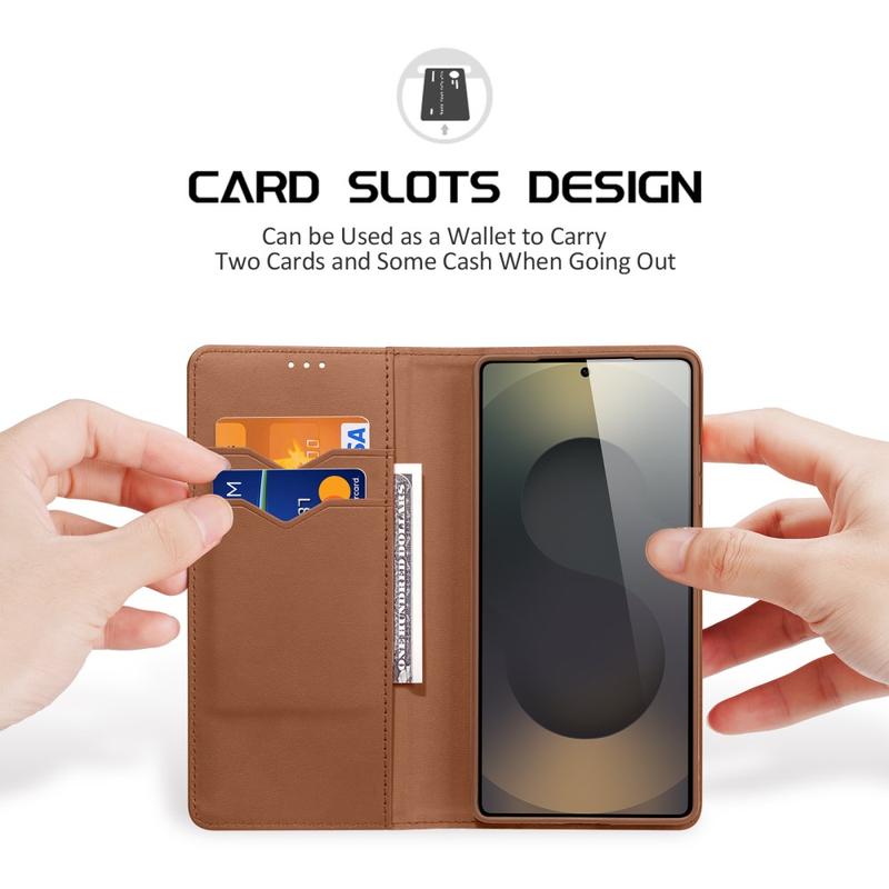 Forbedre beskyttelsen til din dyrebare Samsung Galaxy S26 Ultra med dette Dux Ducis Hivo lommebokdeksel i lær! Utstyrt med noen få kortspor og et kontantrom, vil det effektivt erstatte lommeboken din og beskytte kredittkortinformasjonen din mot tyveri. Laget av høykvalitets ekte skinn og TPU, det vil garantert bli lagt merke til.