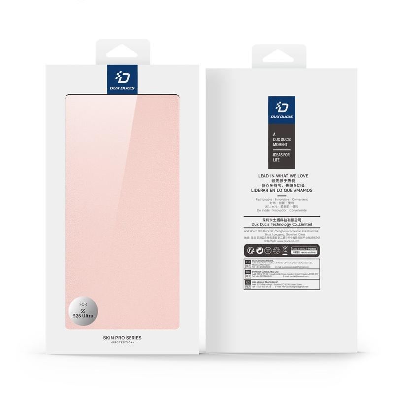 Gi den ultrarobuste Samsung Galaxy S26 Ultra et raffinert utseende som fortsatt tåler daglige støt. Dux Ducis Skin Pro-dekselet pakker telefonen inn i glatt, ripebestandig polyuretan, mens et fleksibelt TPU-skall på innsiden demper støt. Et diskret kortspor og et utfellbart visningsstativ gir praktisk funksjonalitet uten ekstra vekt.