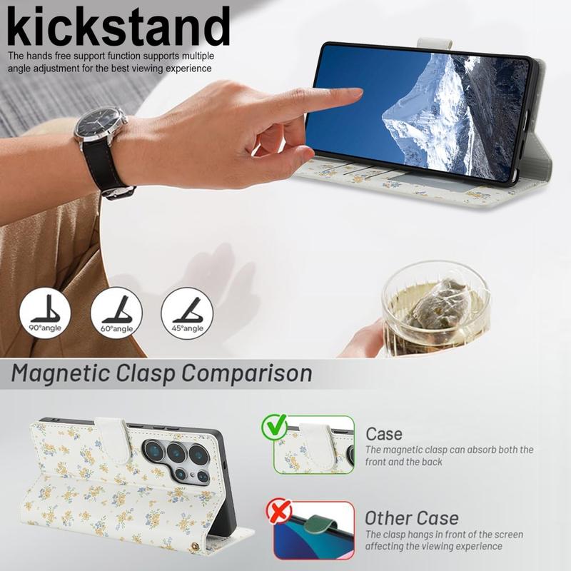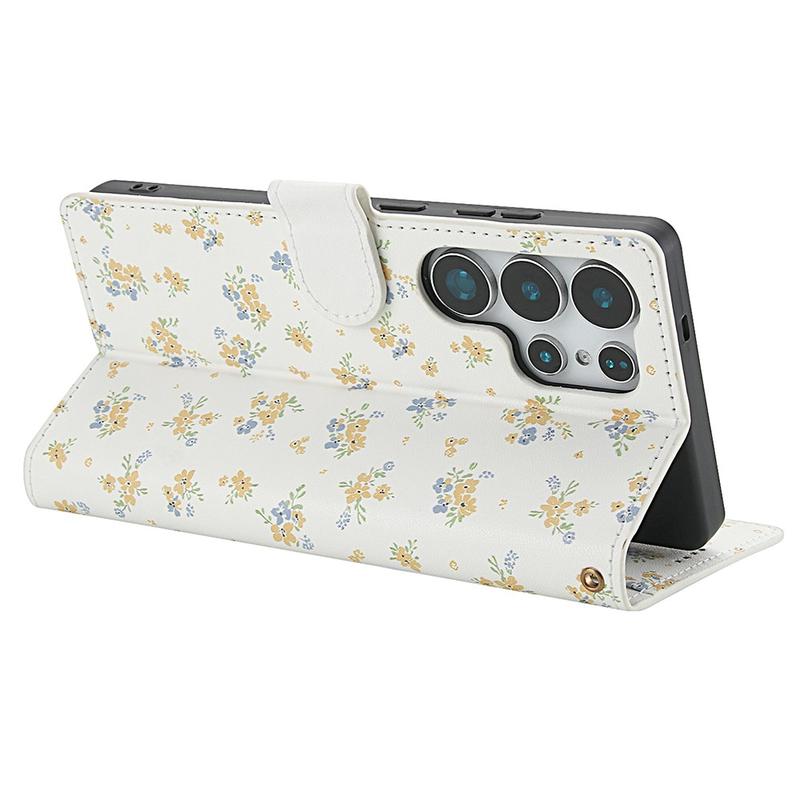 Oppfrisk din Samsung Galaxy S26 Ultra med en slank flip-lommebok som kombinerer sikker beskyttelse og praktisk hverdagsbruk. Den rombisk sydde fronten og det lille blomstermønsteret gir en elegant stil, mens et mykt TPU-skall demper fall og en polyuretanfolie beskytter mot riper. Flere kortplasser, en kontantlomme og en medfølgende håndleddsstropp gjør dette etuiet til en komplett løsning for pendling, reise eller utekveld.