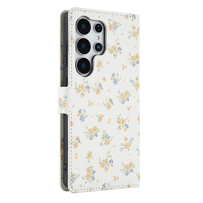 Rombisk blomsterlommebok-etui for Samsung Galaxy S26 Ultra - med stropp og kortspor