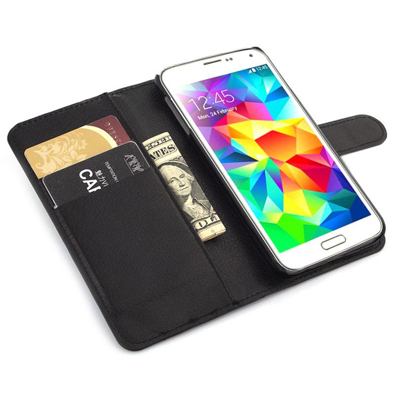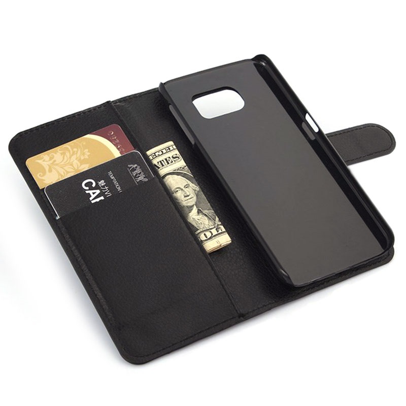En praktisk lommebok-veske som beskytter din Samsung Galaxy S 6 og har nok plass til dine sedler og kort.