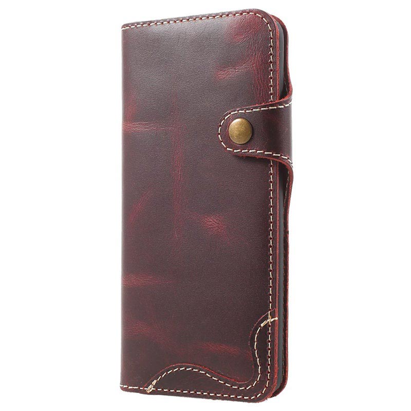 - Et lommebok flippdeksel i retrostil til Galaxy S9 som er lagd av ekte lær