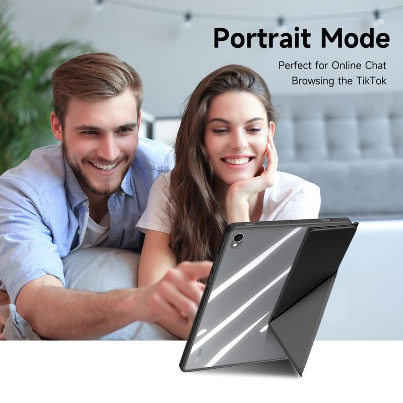 Ultratynn: Den slanke, lette og myke fronten er laget av førsteklasses PU-skinn, det ripefrie interiøret gir god beskyttelse, og TPU-rammen + PC-baksiden gjør nettbrettet mer stabilt.