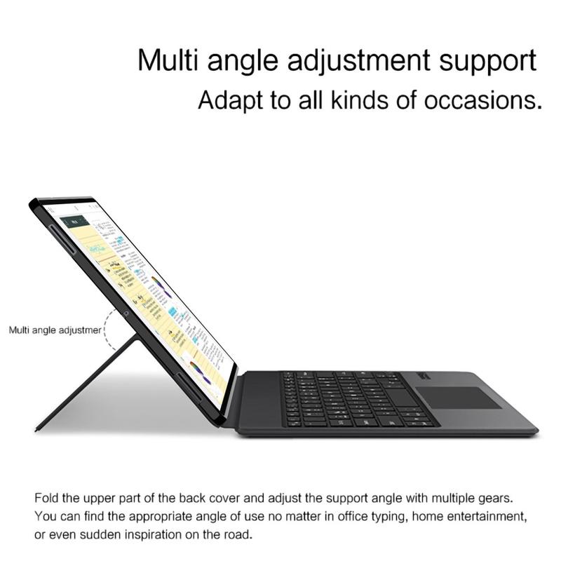 Forbedre din Samsung Galaxy Tab S11 Ultra med Bluetooth-tastaturetuiet, et multifunksjonelt 2-i-1-tilbehør som kombinerer beskyttelse, produktivitet og stil. Dette elegante etuiet er laget av førsteklasses polyuretan og gir full beskyttelse mot riper, støt og fingeravtrykk, samtidig som det opprettholder et profesjonelt utseende. Bluetooth-tastaturet kobles trådløst til for smidig, responsiv skriving, mens den integrerte styreplaten støtter multigest-kontroll for uanstrengt navigering. Tastaturet har bakgrunnsbelysning, slik at du kan skrive komfortabelt selv i omgivelser med lite lys. Det innebygde justerbare stativet gir en ergonomisk synsvinkel, noe som gjør den perfekt for skriving, strømming eller lesing. Dette tastaturetuiet er designet for forretningsbruk, reiser eller hverdagsbruk, og forvandler nettbrettet ditt til en bærbar arbeidsstasjon.