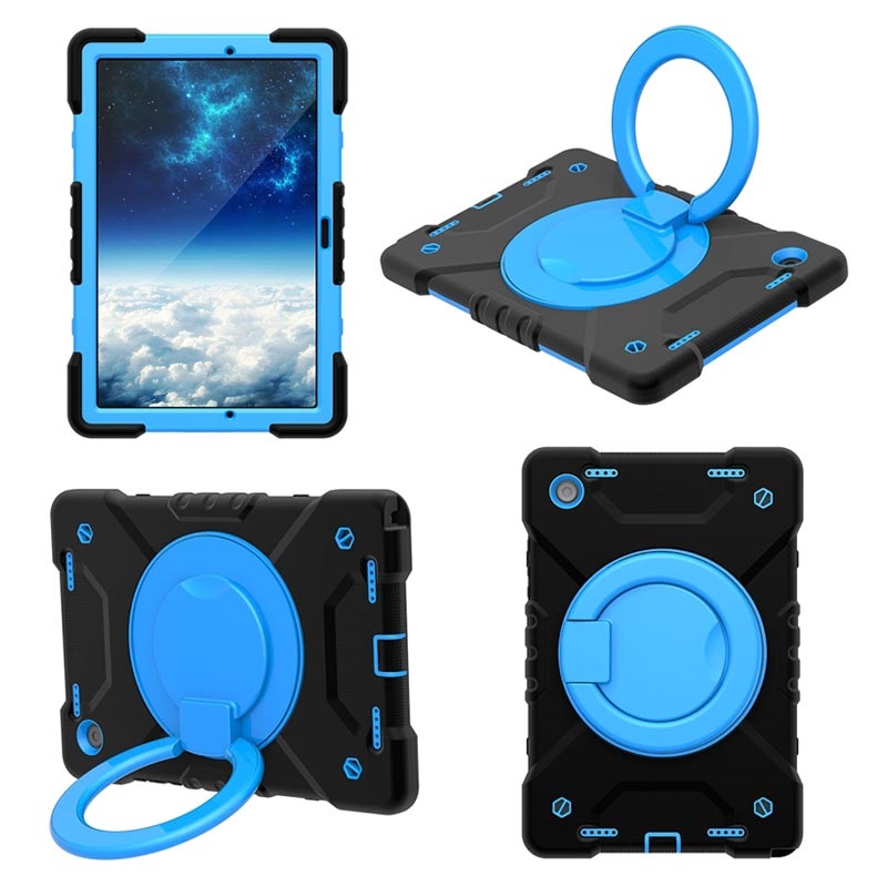 Beskytt din Samsung Galaxy Tab A8 10.5 (2021) mot daglig skade med dette fantastiske Heavy Duty 360 dekselet! Dette trendy dekselet med en innvendig sklisikker fôr og integrert roterende stativ gir håndfri visning av landskap eller portrett. Rammen og det indre skallet er laget av plast og den ytre overflaten av myk silikon. Denne kombinasjonen gir utmerket beskyttelse mot fall eller skader. Populær og beskyttende - dette hybrid-dekselet er det perfekte dekselet til din Samsung Galaxy Tab A8 10.5 (2021).