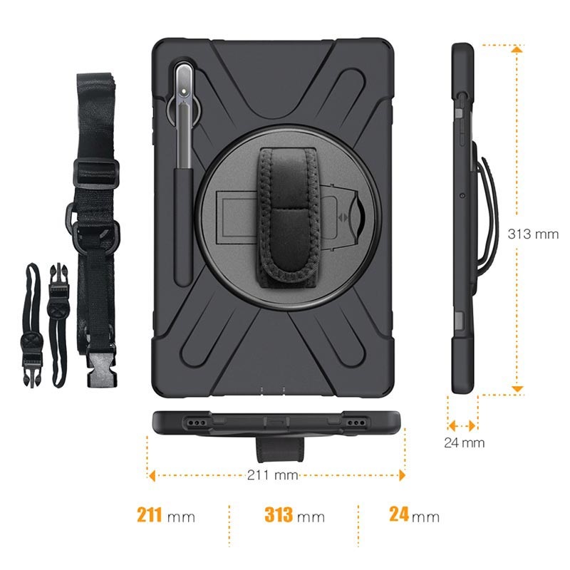 - Inkludert skulderrem skal sikkert bære din Samsung Galaxy Tab S7+, Galaxy Tab S8+
