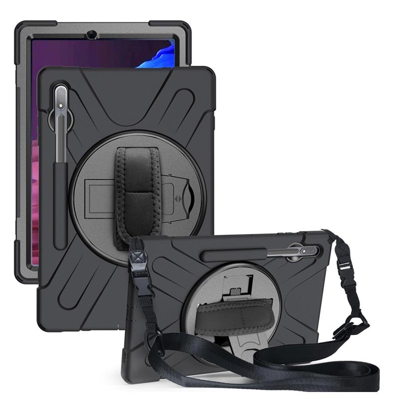 Heavy Duty 360 Roterende Deksel til Samsung Galaxy Tab S7 Plus, Galaxy Tab S8 Plus med håndrem og skulderrem