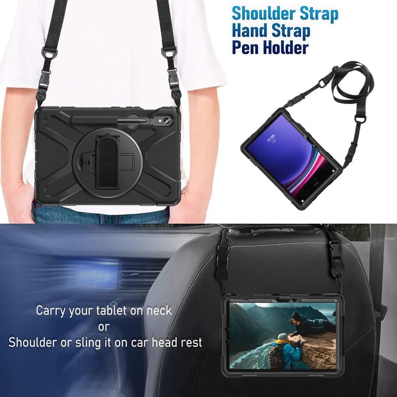 - Inkludert skulderrem skal sikkert bære din Samsung Galaxy Tab S10 FE, Galaxy Tab S9 FE, Galaxy Tab S9, Galaxy Tab S8, Galaxy Tab S7