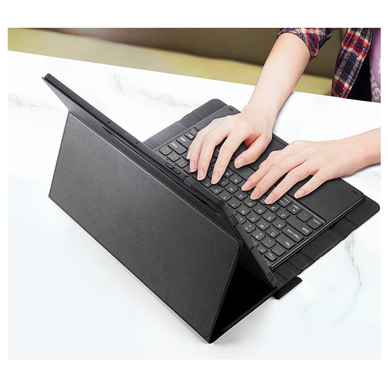 Slank og lett design gjør at du enkelt kan bære dette fantastiske Dux Ducis Bluetooth-tastaturet til Samsung Galaxy Tab S9 Ultra overalt. 2-i-1, Bluetooth-tastatur og et nettbrettdeksel. Tastaturet er festet med en dobbel magnet, og det er veldig stabilt og vil ikke bevege seg unødig. Den har også en berøringsplate med justerbar følsomhet og en langvarig knapp. Nyt håndfri opplevelse ved å bruke et dekel som støttestativ.
