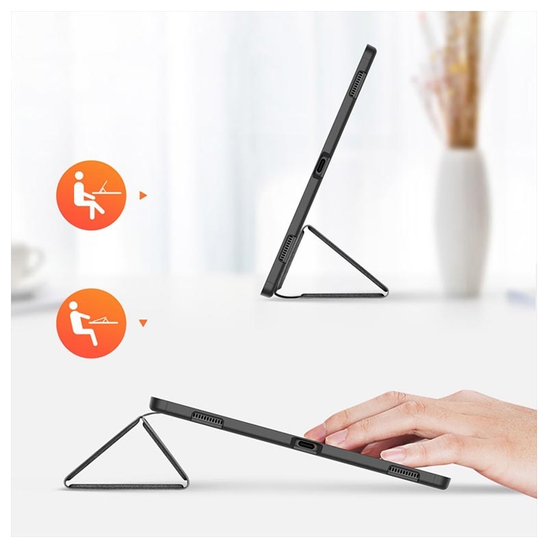 Dette tilbehøret beskytter enheten mot stæt og riper, i tillegg til at det utvider også funksjonaliteten. Den frontklaffen fungerer som et stativ med tre moduser for enkel skriving og håndfri videovisning.