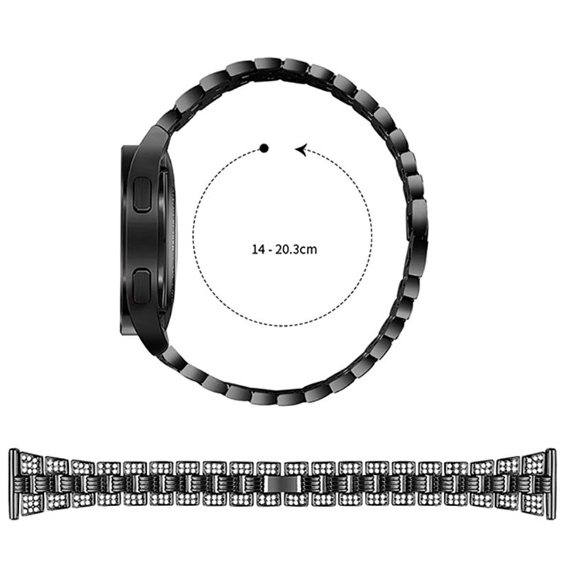 Gjør Samsung Galaxy Watch4, Galaxy Watch4 Classic, Galaxy Watch5, Galaxy Watch5 Pro, Galaxy Watch6, Galaxy Watch FE, Galaxy Watch7 stilig med dette elegante, glitrende båndet. Dette båndet i rustfritt stål er dekorert med blanke smykkesteiner som forvandler aktivitetsarmbåndet ditt til et nydelig smykke. Den har låselukking og metallramme som passer perfekt til Samsung Galaxy Watch4, Galaxy Watch4 Classic, Galaxy Watch5, Galaxy Watch5 Pro, Galaxy Watch6, Galaxy Watch FE, Galaxy Watch7.