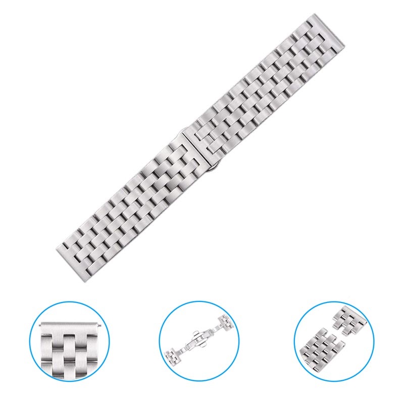 I tillegg til å ha en slitesterk rustfritt stålkjede, har denne Samsung Galaxy Watch-stroppen også en praktisk sommerfuglespenne. Samtidig passer den tradisjonelle designen til alles stil.
