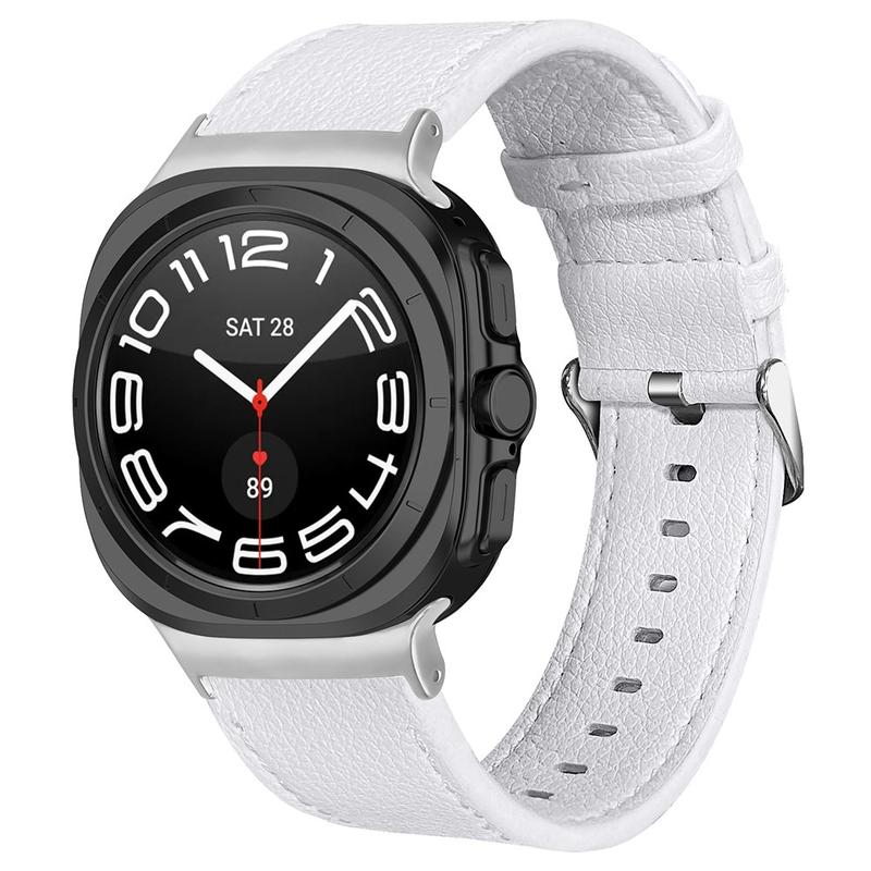 - Førsteklasses lærreim med kontakter for Samsung Galaxy Watch Ultra