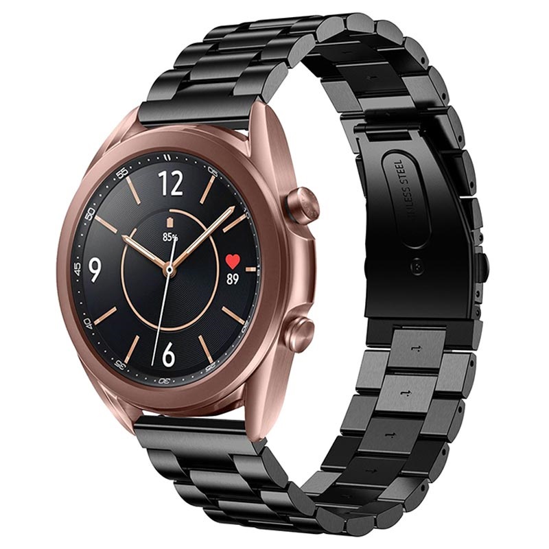 Et perfekt erstatningsarmbånd til Samsung Galaxy Watch3 som passer til både sporty og elegante anledninger. Denne rustfrie stålremmen har en klassisk foldbar spenne for praktisk håndtering.