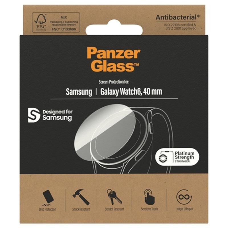 - PanzerGlass skjermbeskytter i herdet glass til Samsung Galaxy Watch6