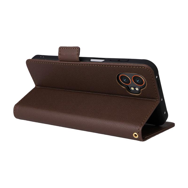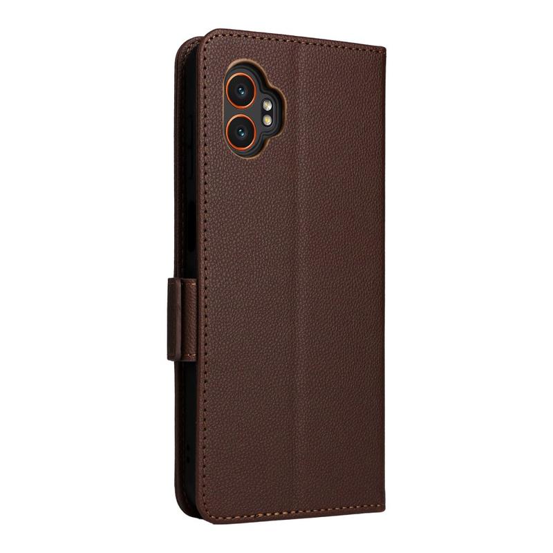 Øk beskyttelsen av din Samsung Galaxy XCover7 Pro med Wallet Case Magnetic Closure. Dette etuiet er laget av førsteklasses polyuretan og føles mykt å ta på, samtidig som det gir holdbar beskyttelse for din Samsung Galaxy XCover7 Pro. Den diskrete elegansen i polyuretan med litchi-tekstur og fine sømmer gir en luksuriøs finish til din Samsung Galaxy XCover7 Pro.