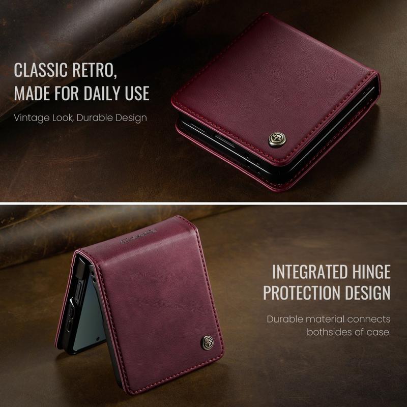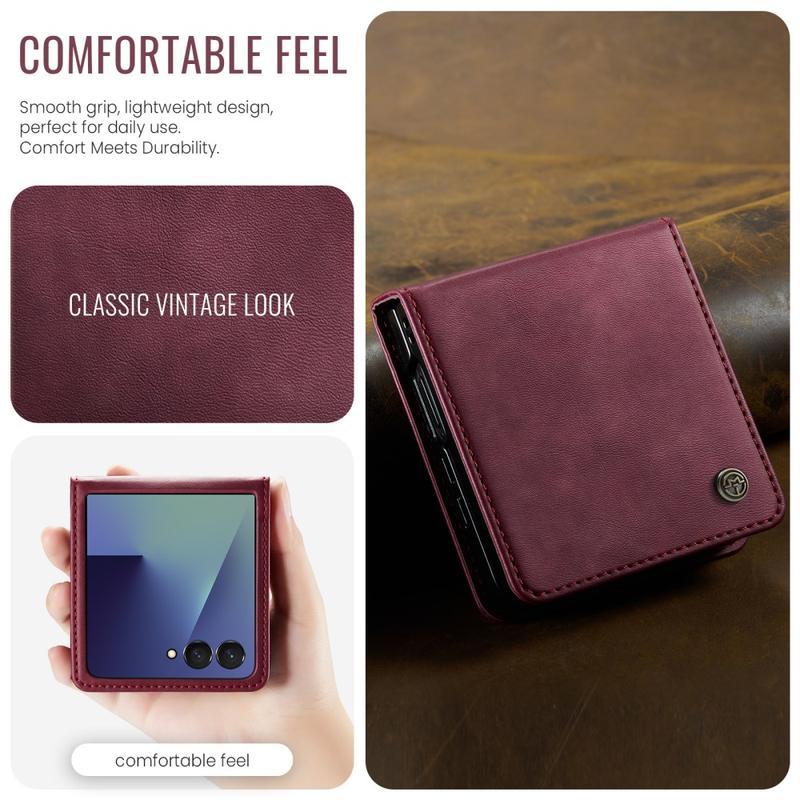 Caseme 033 Lommebok-etui med kalvestruktur og RFID-blokkering og stativfunksjon for Samsung Galaxy Z Flip7