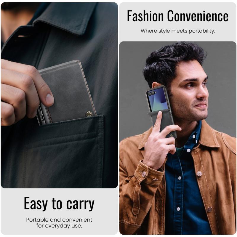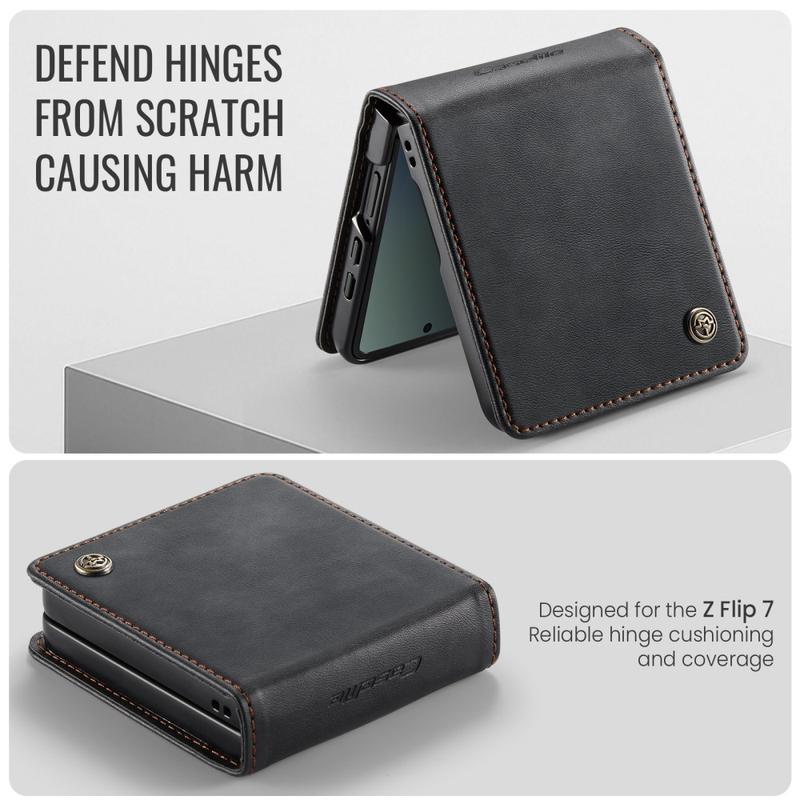 Caseme 033 Lommebok-etui med kalvestruktur og RFID-blokkering og stativfunksjon for Samsung Galaxy Z Flip7