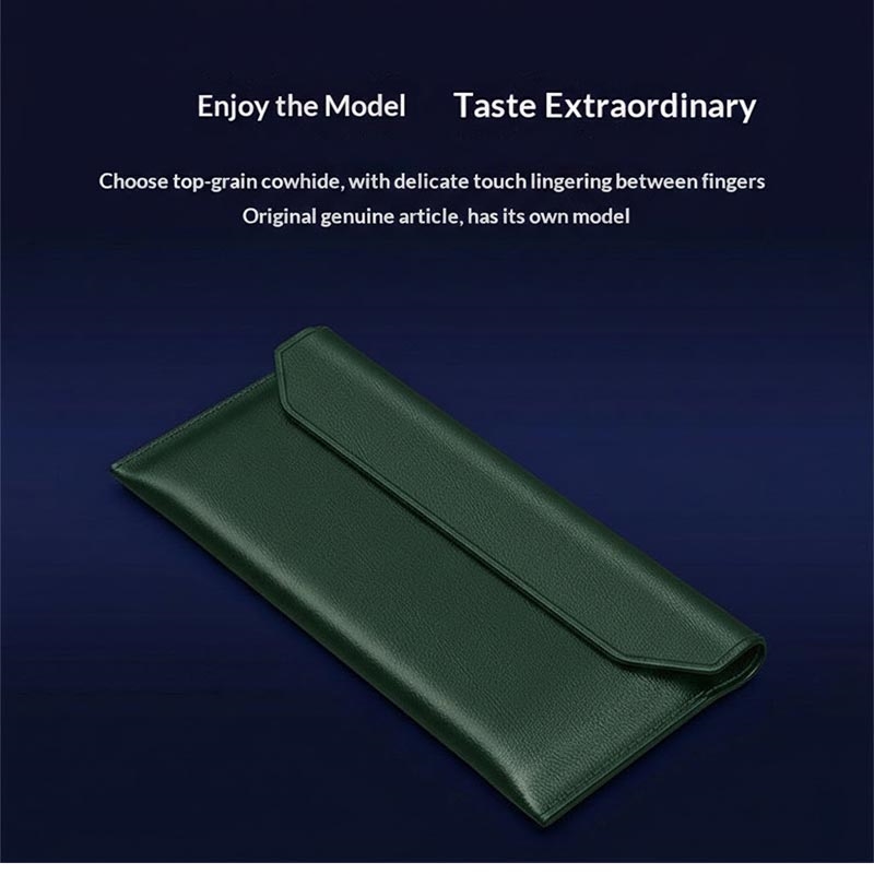 Den konvoluttlignende utformingen er skreddersydd for sammenleggbare smarttelefoner, slik at Samsung Galaxy Z TriFold kan brettes naturlig samtidig som den er beskyttet. Strukturen støtter smidig åpning og lukking uten å forstyrre foldemekanismen.