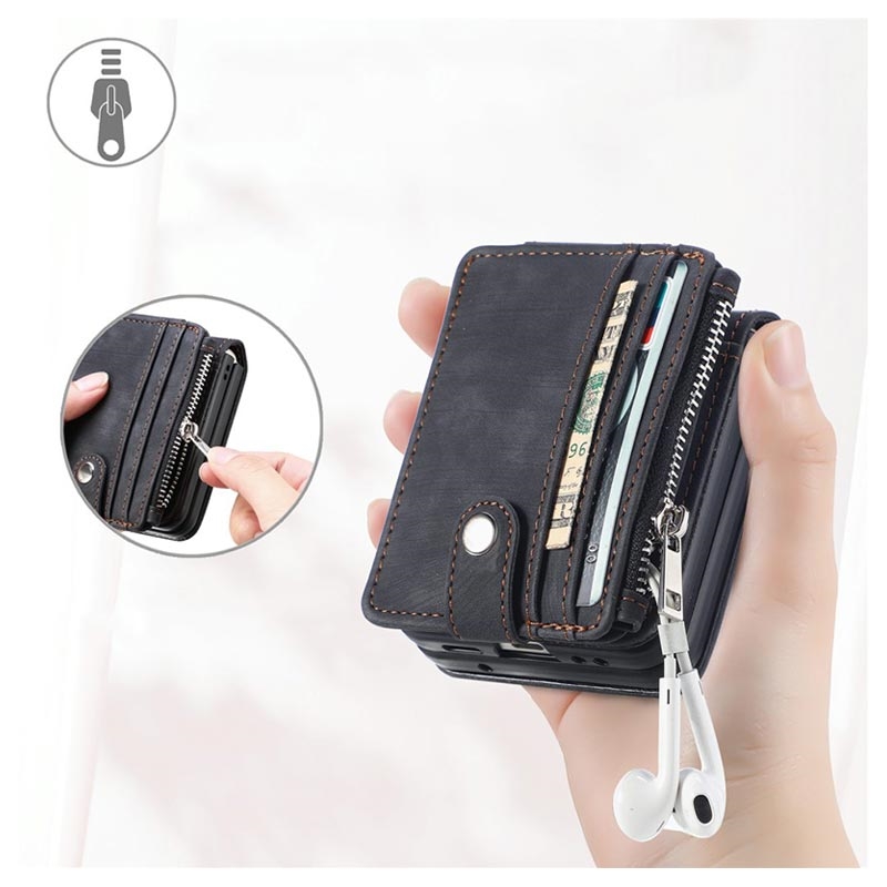 Dette ultrastilige beskyttelsesdekselet gir din Samsung Galaxy Z Flip5 tidløs eleganse. Samtidig garanterer et solid plastskall, belagt med høykvalitets polyuretan, pålitelig all-around-beskyttelse for din Samsung Galaxy Z Flip5. Dette retrodekselet har en avtakbar lommebok med tre kortspor og en lomme med glidelås for å trygt oppbevare litt penger.