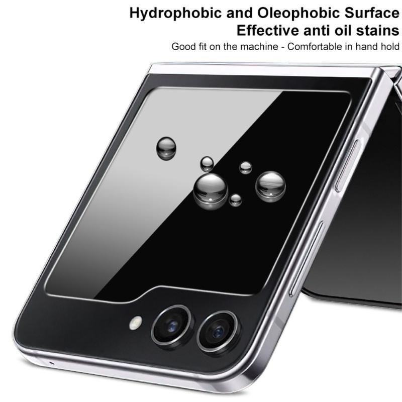 - En oleofobisk belegg avviser fingeravtrykk, flekker og olje på Samsung Galaxy Z Flip6, Galaxy Z Flip7 FE-skjermen