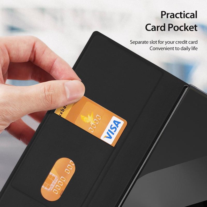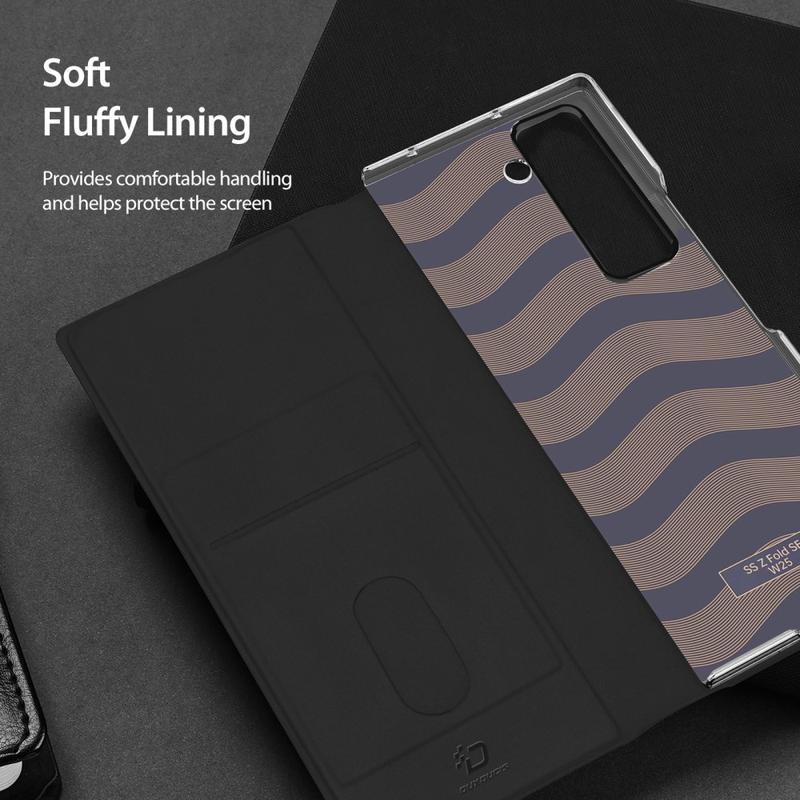Gi beskyttelse på høyeste nivå for din dyrebare Samsung Galaxy Z Fold Special, og gi den et slående og iøynefallende utseende med dette førsteklasses flip-dekselet fra Dux Ducis. Dekselet har hevet kant rundt kameraet for ekstra sikkerhet og ett innvendig kortspor for ditt ID-kort, bankkort eller et annet hovedkort.