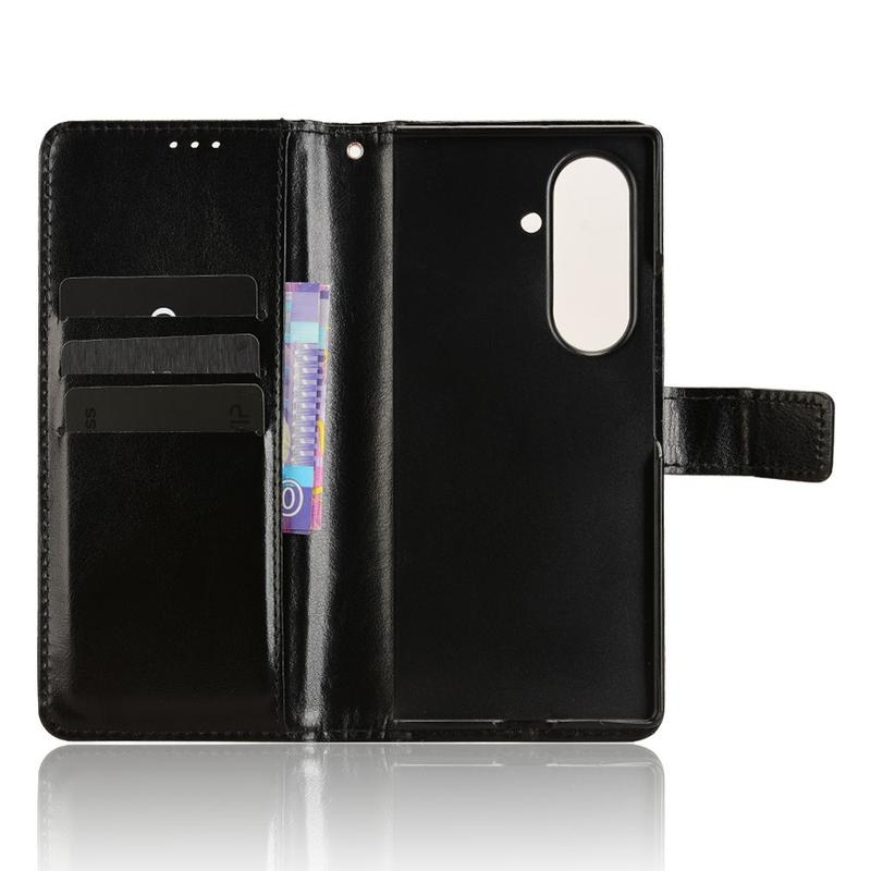 Gi din nye Samsung Galaxy Z Fold7 et raffinert vintageutseende samtidig som den erstatter hverdagslommeboken din. Eksteriøret i polyuretan med Crazy Horse-tekstur kombineres med et støtdempende TPU-skall for å beskytte mot fall og riper, mens smarte lommer holder orden på kort og kontanter.
