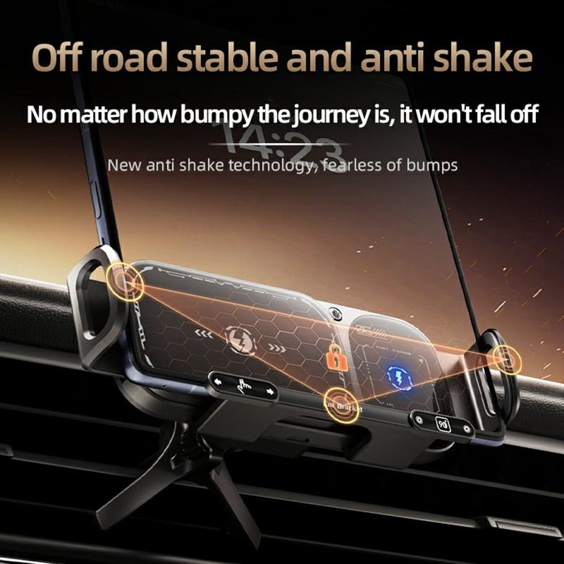 Den innebygde superkondensatoren i denne laderen lagrer nok energi til å drive den motoriserte klemmen selv etter at strømmen er kuttet - en funksjon som vanligvis finnes i førsteklasses bilfester, og som sikrer at du trygt kan ta ut telefonen selv når motoren er slått av.