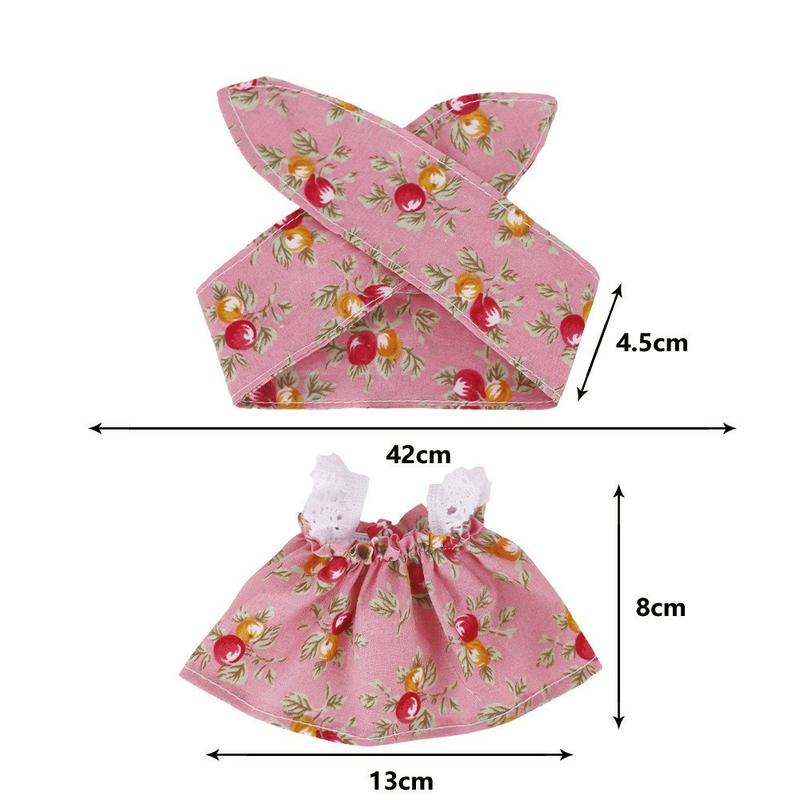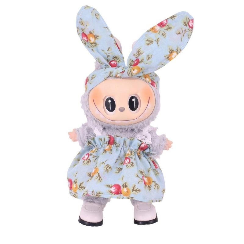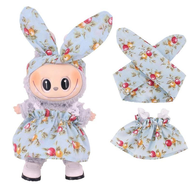 Hagefestkjole og pannebånd-sett til 17cm Labubu minifigur - skreddersydd festantrekk, mykt tøy, lettkledd design